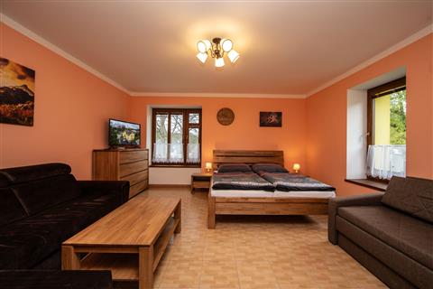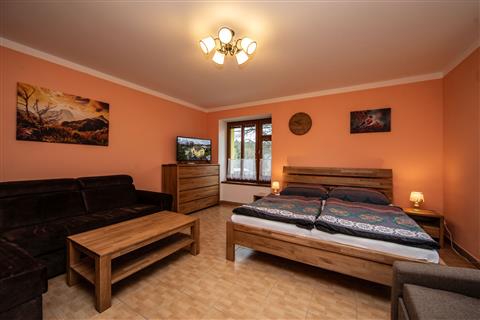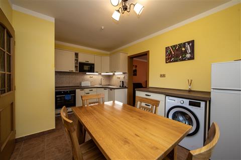 Kuchyň plně vybavená: lednice s mrazákem, el. trouba se sklokeramickou deskou, myčka nádobí, mikrovlnná trouba, rychlovarná konvice, toustovač, jídelní sety a nádobí.