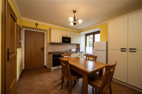 Kuchyň plně vybavená: lednice s mrazákem, el. trouba se sklokeramickou deskou, myčka nádobí, mikrovlnná trouba, rychlovarná konvice, toustovač, jídelní sety a nádobí.