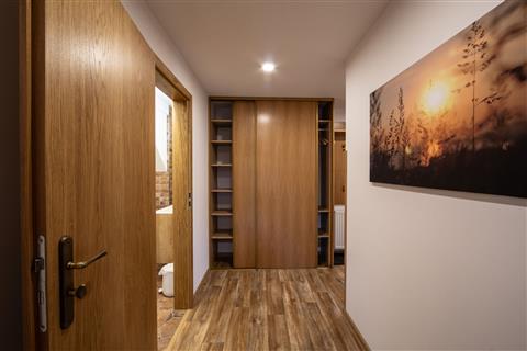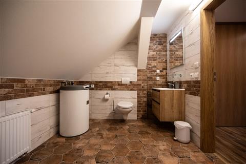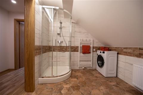Koupelna: sprchový kout, WC, fén na vlasy, automatická pračka